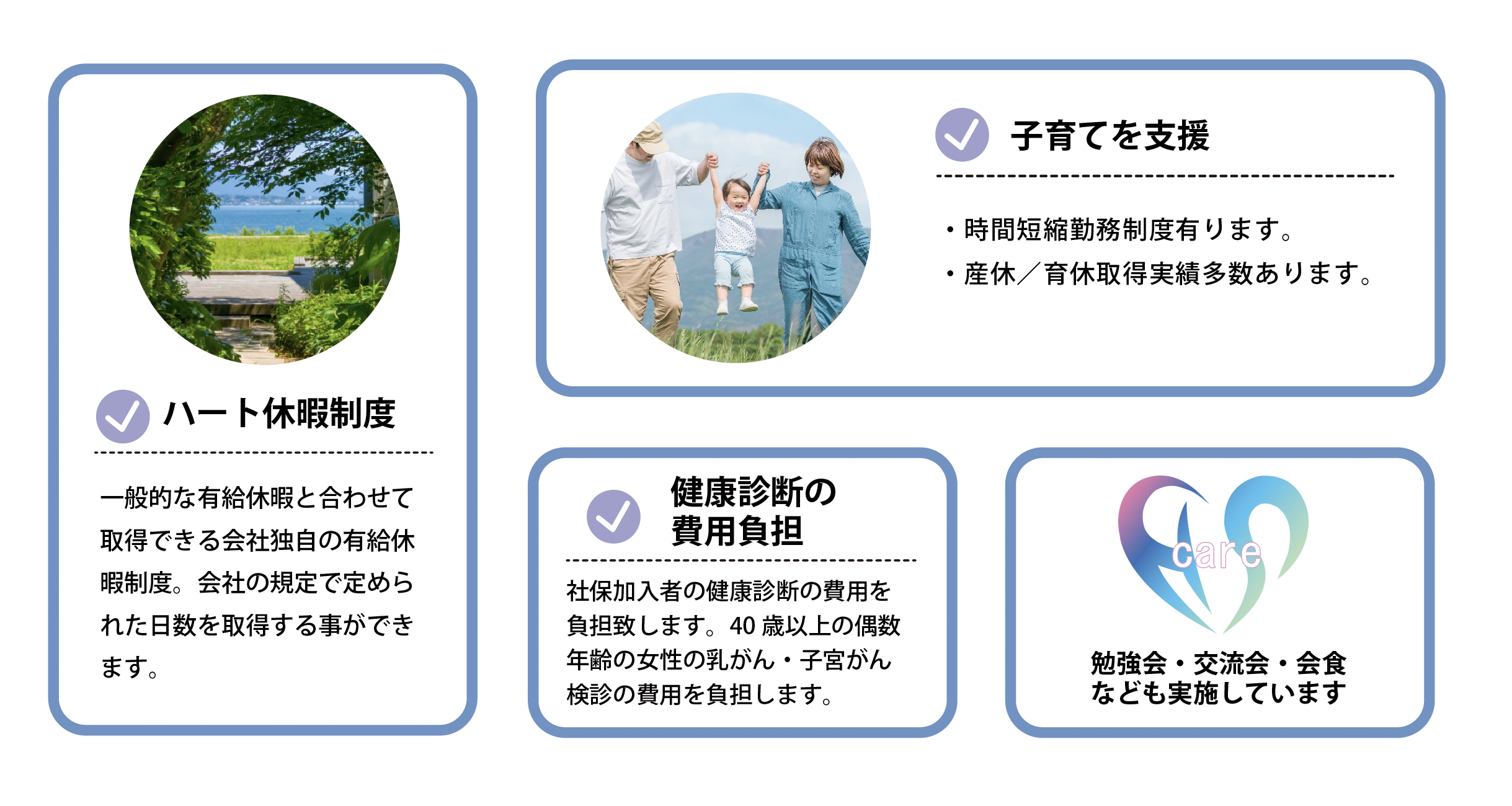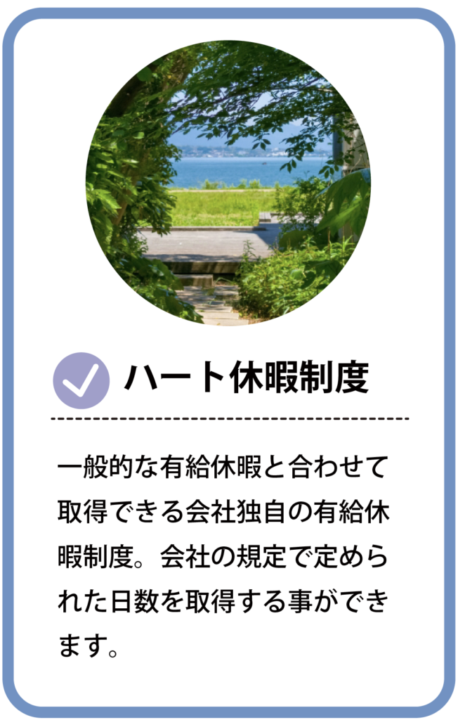 その通りです。また、当社にはハート休暇制度が有るので、年3日入社からすぐに利用できます。